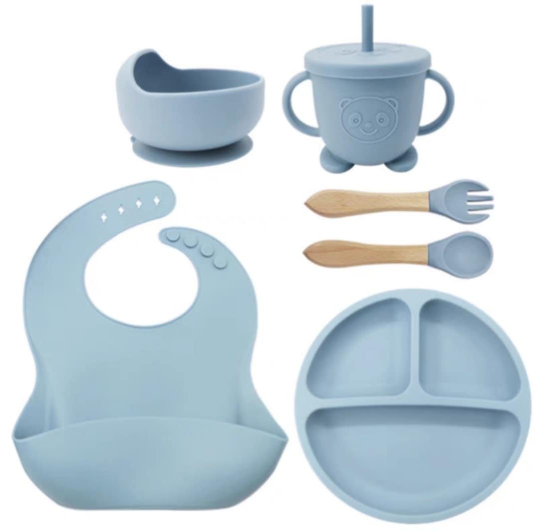 ბავშვის სილიკონის ჭურჭლის ნაკრები ცისფერი